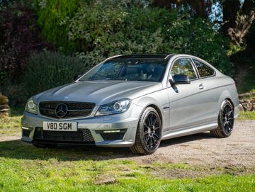 A phenomenal 2012 Mercedes-Benz C63 AMG Coupe finished in special order Palladium Silver. A factory Edition 125 facelift car equipped with the 7 Speed MCT and the forged M156 6.2L naturally aspirated V8 (Performance Pack cars came with vast factory upgrades). This is a factory optioned Performance Pack car it was also spec'd with the rarely seen driving assistance pack (distronic cruise etc). It has covered 84,700 miles from new with full service history.